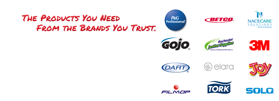 Benefit from the convenience and value of “The Total Package." Regional Distributors, Inc. is your one-stop source for janitorial, paper, food service, packaging, ice cream, frozen yogurt, laundry and hospitality, commercial warewashing, and green products. We are committed to delivering the brands you trust and the exceptional service, quality, and value you deserve. Our passionate drive to provide a streamlined solution for your commercial supply needs is what sets us apart from other distributors and makes us a trusted, value-added partner. With Regional Distributors, you have a 100% peace of mind guarantee to receive exceptional service and products, all with a single source supplier and the value that comes with it.